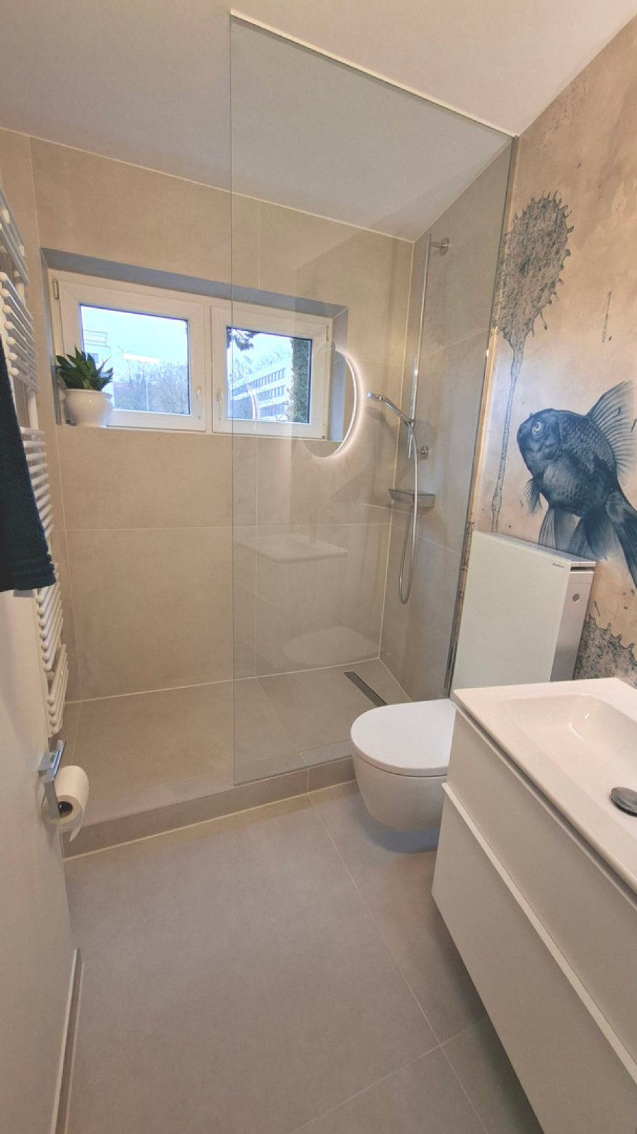 Mit einer klaren Gestaltung, stimmigen Materialien und einer reduzierten Farbpalette entstanden zwei einladende Räume, die Alltagstauglichkeit und Ästhetik verbinden. Die Sanierung zeigt, dass auch kleinere Bäder mit durchdachter Planung und Liebe zum Detail an Qualität und Charakter gewinnen können.