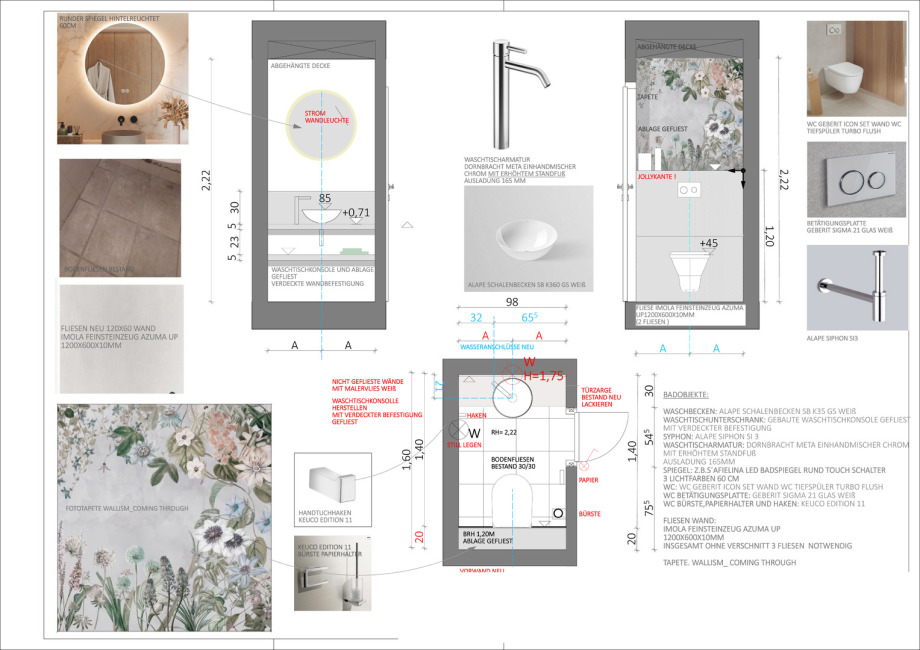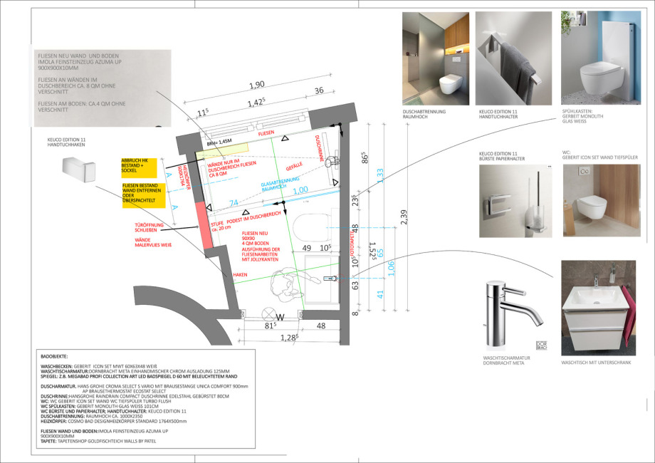 Der Grundriss des Gästebades stellte dabei eine besondere Herausforderung dar: Zwei Türen sowie schräg verlaufende Wände schränkten die Nutzbarkeit deutlich ein. Durch das bewusste Schließen einer Tür konnte der Raum neu organisiert und ein deutlich komfortablerer Duschbereich realisiert werden.