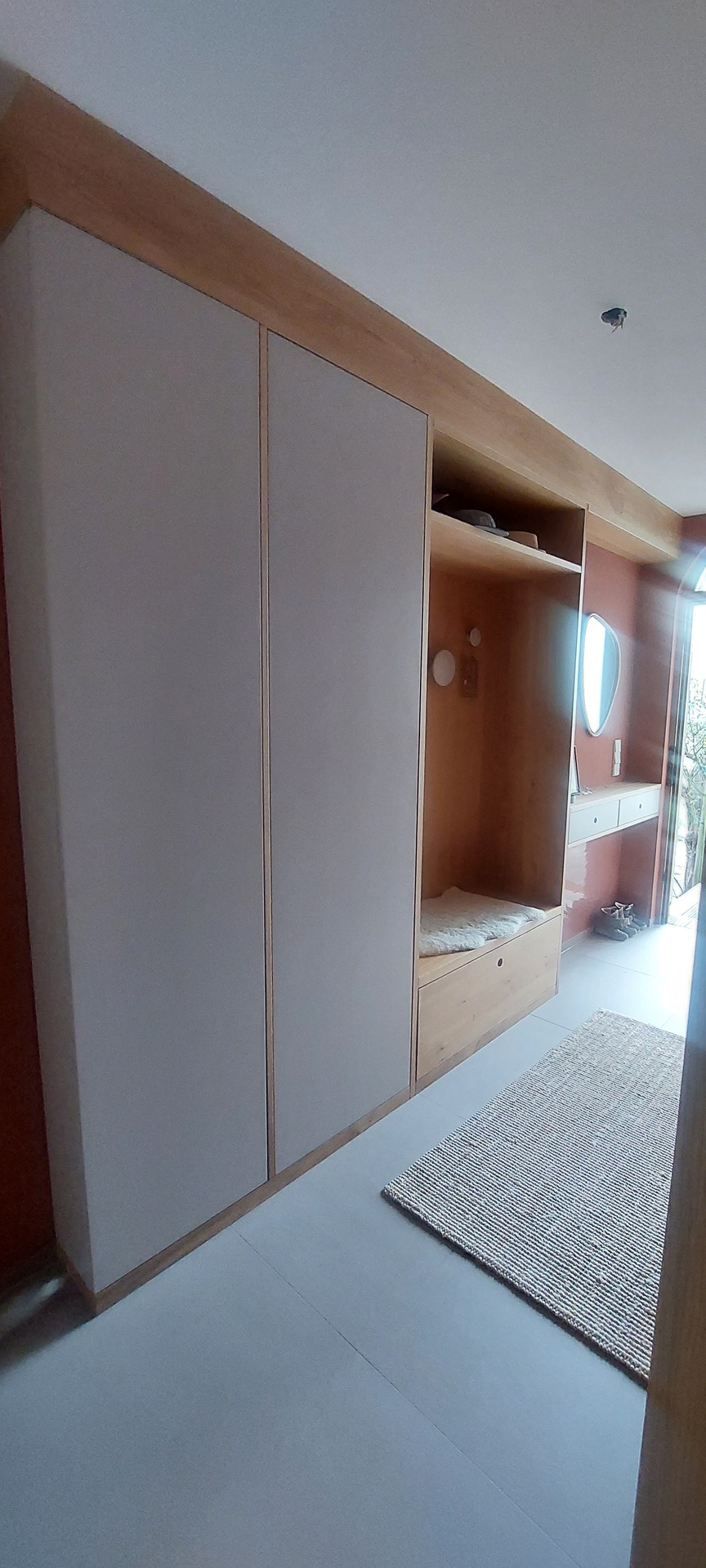 Wunsch der Bauherren war ein Garderobenmöbel für den Eingangsbereich Flur.